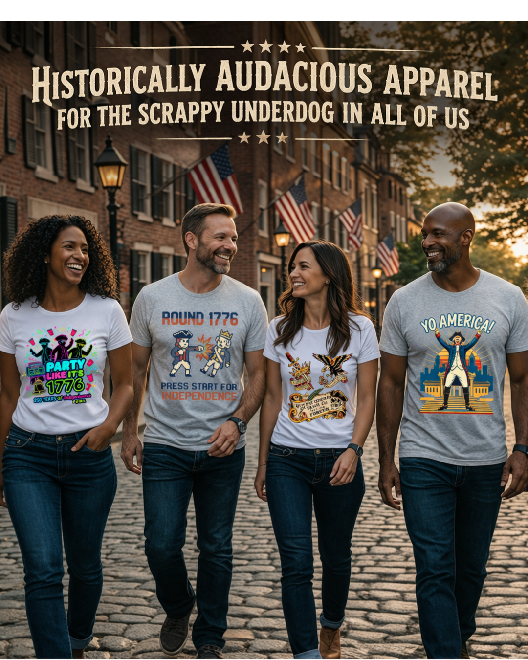 Because we didn't fight the British just to outsource the shirts. We have printing facilities in Florida and Texas, and for our international customers — yes, even you, Britain — we've partnered with printers worldwide to get your order to you fast.
